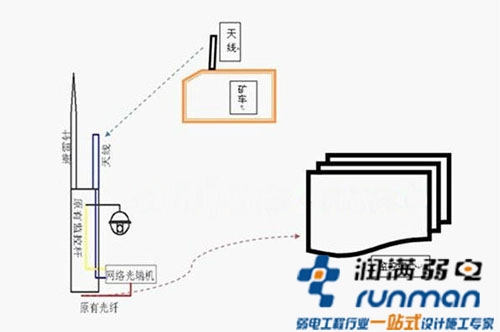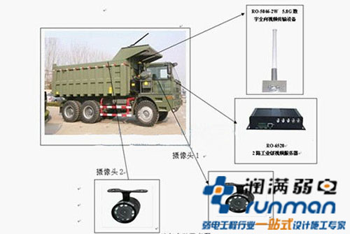 利用現有預埋光纖和攝像機立桿安裝RO-5844-2W 5.8G無線網絡全向覆蓋設備,把網線連接網絡光端機,通過現有光纖把接收到移動中礦車運輸的情況實時傳送到監控中心。每臺車需要一臺5846和一個2路網絡視頻服務器,兩個攝像頭。請根據車輛的數量在具體配置。