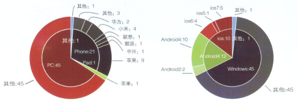 統(tǒng)計顧客上網(wǎng)人數(shù)、收集上網(wǎng)的移動終端的類型、操作系統(tǒng)類型并以餅圖的方式顯示: