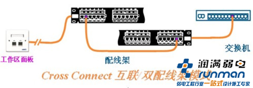 雙配線架模式又稱之為互聯(lián)方式,原理是在原有的配線架和交換機之間再添加一個配線架,交換機端口通過單端帶水晶頭的跳線一一對應固定連接到添加的配線架上(也就是RJ45頭插在交換機端口上,另外一端端接到配線架后端的模塊上,端口一一對應)。原有配線架與交換機端口之間的跳線連接,轉(zhuǎn)換為在兩個配線架之間的連接。將交換機端口延伸到另外的配線架上,交換機端口為固定連接,無需再經(jīng)常插拔,減少了故障率;同時對于一些端口密度較大的交換機,也可以方便維護和操作,交換機端口分散到配線架端口上。