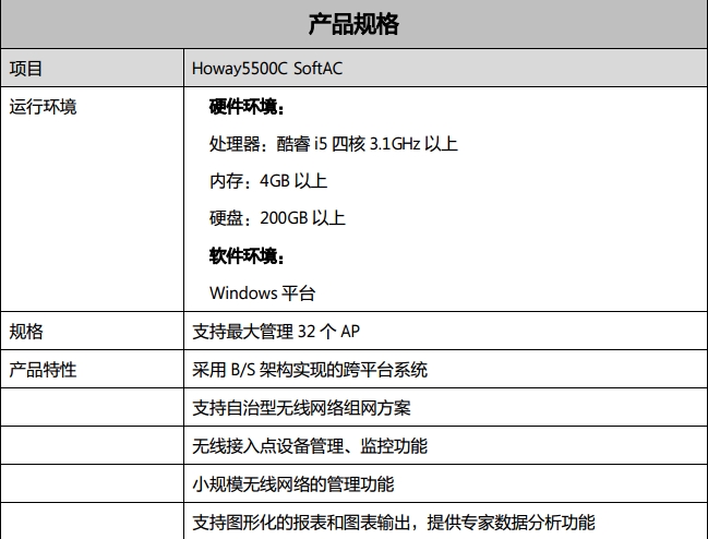 Howay5500C是相對于Howay6100S來說的,6100S是硬件管理的AC,而5500C是軟件管理的AC。
