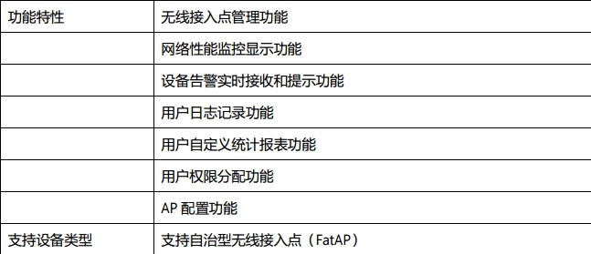 該軟件特別適用于小批量WiFi無線接入設(shè)備的應(yīng)用場景。客戶在此類場景下通常對所有部署的無線接入設(shè)備一一配置很不方便,但購買可以集中配置的無線控制器硬件設(shè)備又非常昂貴。該軟件為需要部署小容量WiFi無線網(wǎng)絡(luò)的客戶提供了一個低成本優(yōu)質(zhì)的網(wǎng)絡(luò)管理服務(wù),不僅能為客戶提供遠(yuǎn)程、方便、有效的集中配置管理,而且還在有效增強(qiáng)網(wǎng)絡(luò)安全性的前提下提供了實時的網(wǎng)絡(luò)可視化管理。