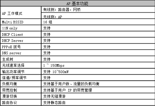 提供最高達 150Mpbs 的無線接入速率,支持最多并發 40 個無線接入用戶同時上網,室內覆蓋距離可達 40-50 米,用戶可在多個 AP 間移動漫游無中斷訪問網絡。射頻芯片采用世界領先的 Afterburner 及 Xpress 增強技術,充分提高了信號的抗干擾能力和無線鏈路負載能