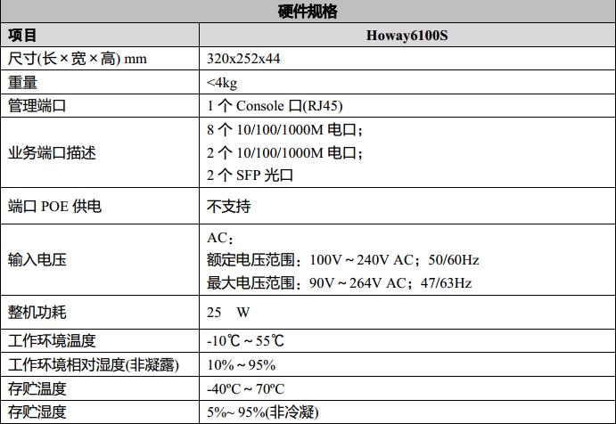 Howay6100S 支持 8 個千兆電口+2 個千兆光口+2 個千兆電口,固定可管理 32 個 AP, 不支持擴展。