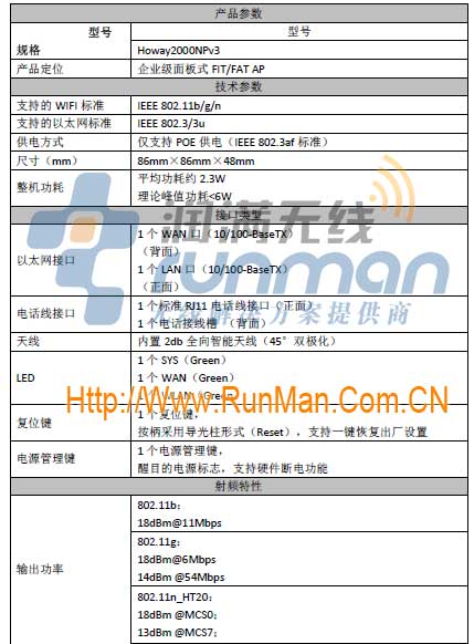 Tags:無線覆蓋 面板式 無線AP 漢明 Howay 2000NP