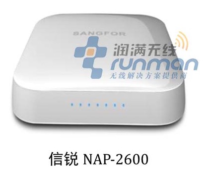 - 信銳 NAP-2600 無線接入點系列是信銳自主研發的支持 802.11a/b/g/n 雙頻并發高速無線接入設備, 2X2MIMO 技術,單射頻最高 300Mbps,整機支持 600Mbps 接入速率。覆蓋范圍廣。上行千兆口,支持 POE 供 電。配合信銳 NAC 系列控制器,為用戶帶來更安全的業務接入和快速的體驗。